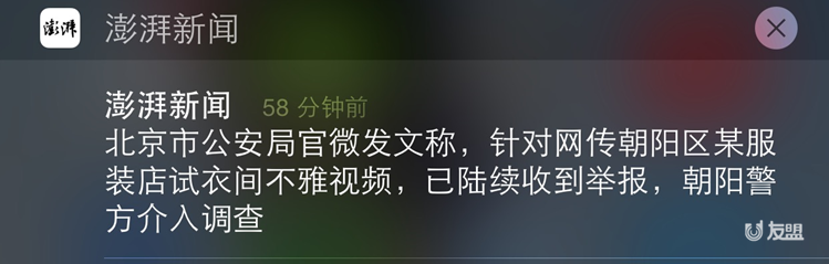 澎湃新闻这条推送简洁,信息传递准确,并能引起用户的好奇。这样的推送保证推送不会骚扰到用户,还会引起一定比例的用户点击消息、进而打开 App。
