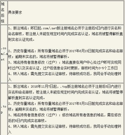 近日,国内各大域名注册商发布公告,通知国际域名所有人在6月15日前完成实名认证,否则将被注册局暂停解析。根据《中国互联网络域名管理办法》的规定,目前注册的.com/.net /.top/.xyz/.vip /.club/.shop/.wang/.ren等域名需要在规定的时间内通过实名审核认证,否则注册局将暂停解析,到时网站无法正常访问,待实名认证通过后方可恢复正常使用。
