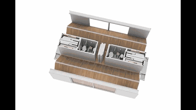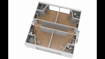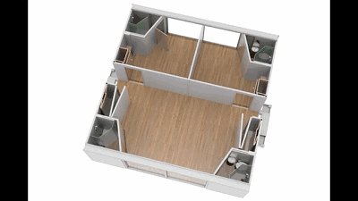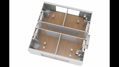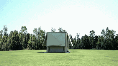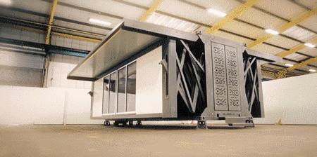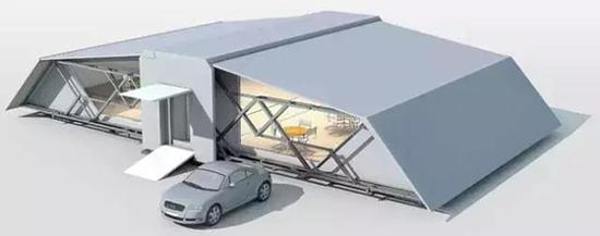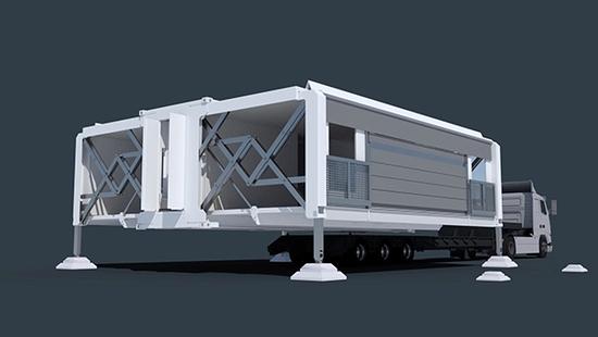 日常家具一应俱全,内部空间自由转换,如沙发、床、椅子和桌子,整个房间里的东西都可以藏在储物空间内被折叠起来。其强大的可扩展性通过多个单元箱自由组合,可以形成互相联系和堆叠的房屋组,以实现更大空间的组合,成为别墅、商场,甚至酒店。